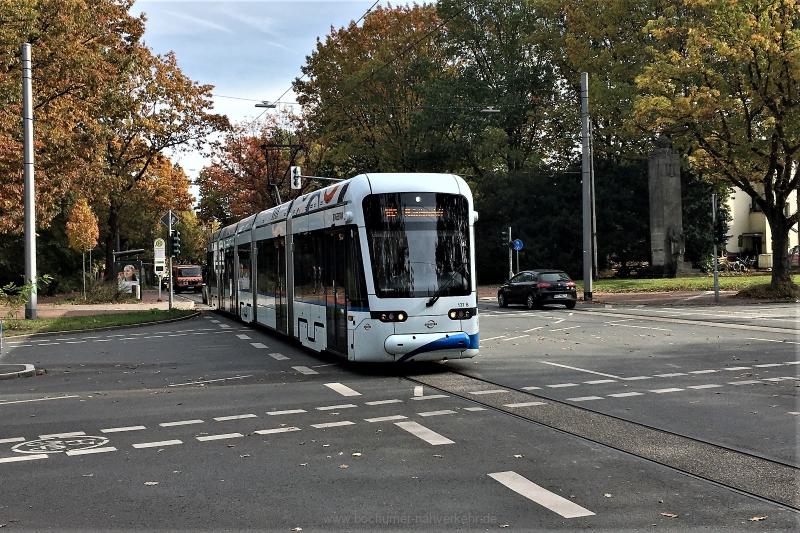 Das Foto (Ludwig Schönefeld) zeigt Triebwagen 137 am 18. Oktober 2021 auf der Unterstraße in Langendreer in Höhe der Lessing-Schule.