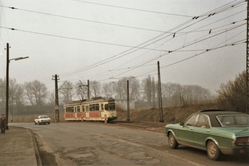 Beispiele dafür sind die hier gezeigten Fotos von Manfred Möller. Sie wurden am 7. April 1979 bei bereits einsetzender Abenddämmerung in Höhe der damaligen Straßenbahn-Hauptwerkstatt Bochum-Gerthe aufgenommen. Daraus resultieren lange Belichtungszeiten und geringe Tiefenschärfe, aber eben auch die ganz eigentümliche, melancholische Stimmung des Revier-Blues.